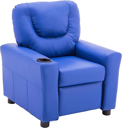 Amazon Com Mcombo Kids Recliner Chair Armrest Sofa Couch With Cup Holder For Toddlers Boys Girls Faux Leather 7240 Dark Blue Kitchen Dining